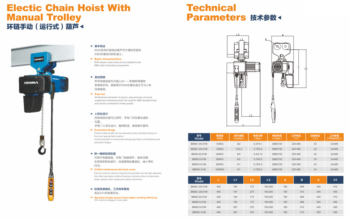 描述: 八馬(BRIMA)環(huán)鏈電動葫蘆,固定式/低凈空/運行式八馬環(huán)鏈電動葫蘆